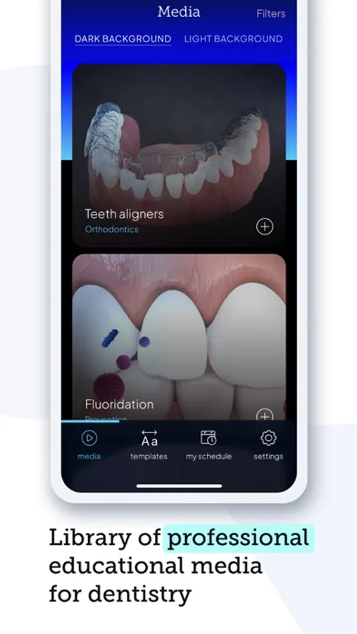 The media database is constantly being expanded with new items. All educational media are consulted with teams of medical specialists, and their effectiveness among patients is confirmed by new dental projects among eminto Clients.