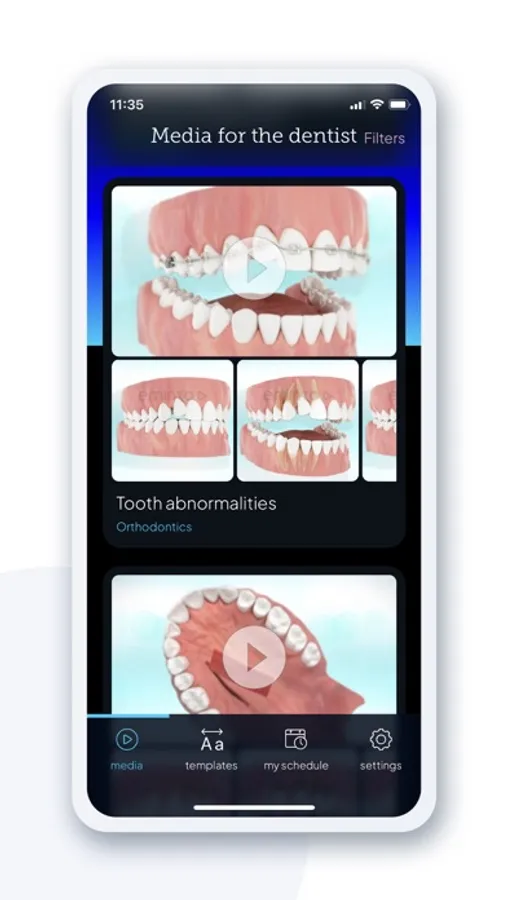 - database of professional educational animations designed to educate patients in the fields of: orthodontics, cosmetic dentistry, implantology, prosthodontics, prevention and periodontics),