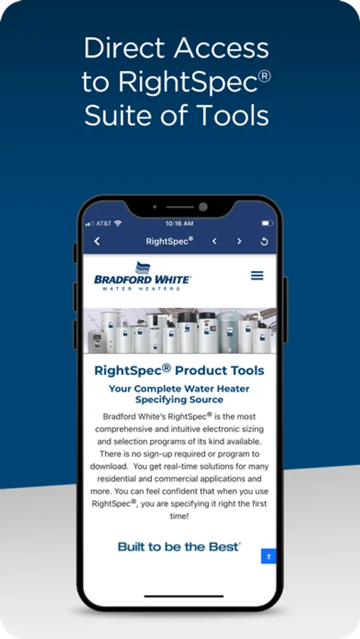 The Bradford White FOR THE PRO® Contractor App is designed to assist contractors who install Bradford White products.