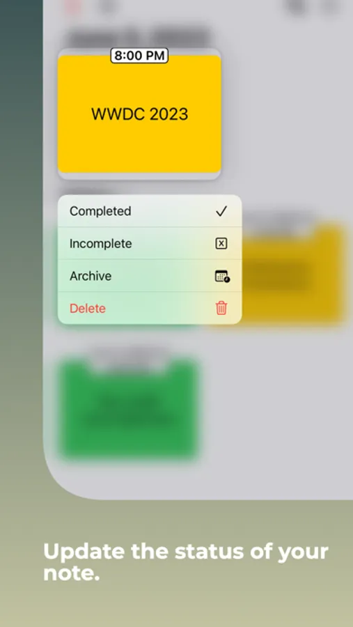 In addition, NoteClock also allows you to mark notes as completed or uncompleted by simply long-pressing on them. This way, you can easily keep track of what you've accomplished, what's incomplete, and what still needs to be done. And with the handy archive feature, you can easily access and review your notes by date, making it easy to stay on top of your tasks and commitments.
