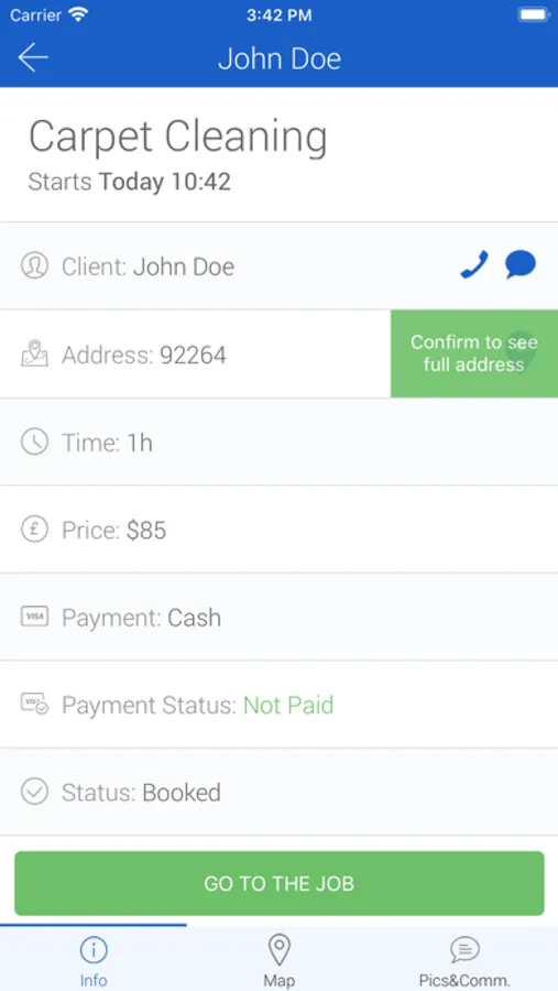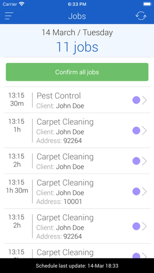 Professionals can easily see their work schedule, upcoming jobs, and detailed job information straight from the app.