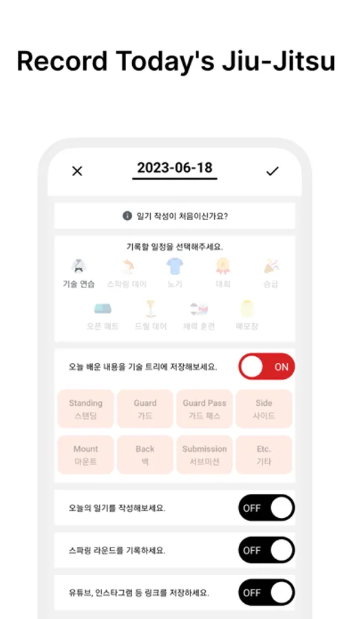 This is a mobile training log journal app for Jiu-Jitsu practitioners.