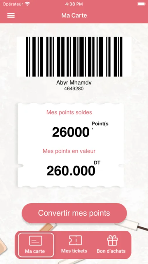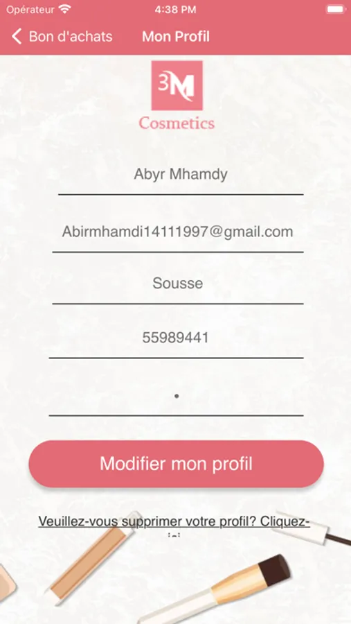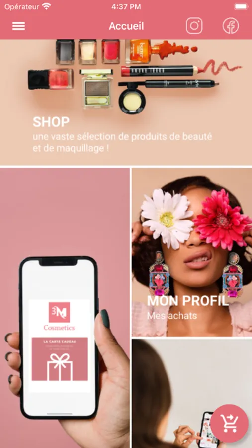 Une application de fidélité dédiée au client de la boutique 3M Cosmétique .