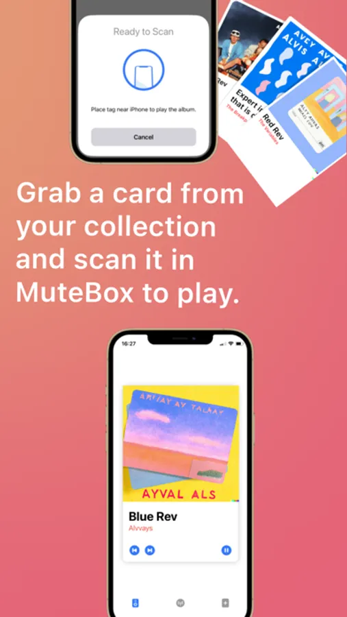 Take your collection to new heights by sharing your passion with others. MuteBox allows you to generate print-ready artwork based on your chosen album, perfectly formatted for NFC cards. Share your NFC albums with fellow MuteBox users, create personalized playlists for friends, or even distribute them as promotional items for your band's latest release.