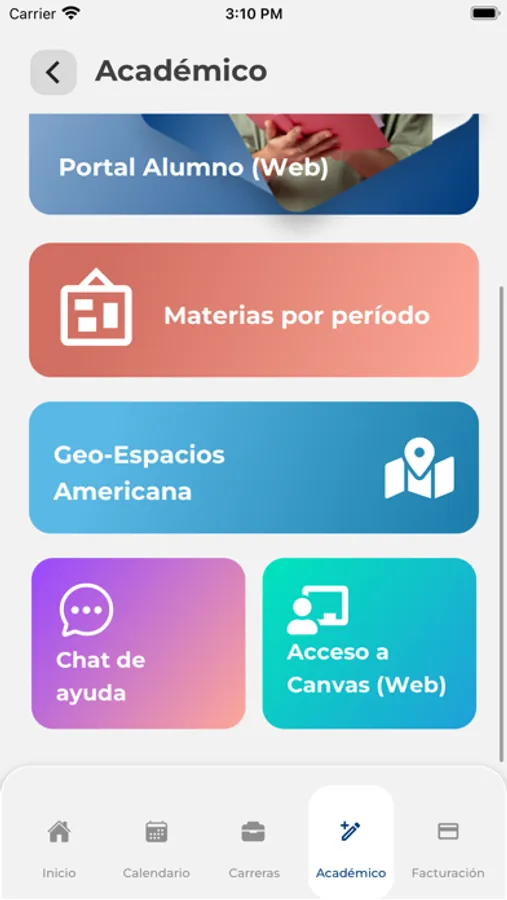 Te permitirá acceder a tu estado de cuentas, facturas de pago, calificaciones, cursos, asistencias.