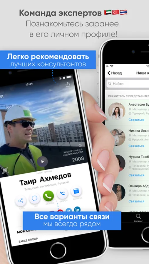 У каждого агента свой профессиональный профиль — заранее знакомьтесь и выходите на связь, любым удобным способом — вам доступны все чаты, номера телефонов и email агентов.