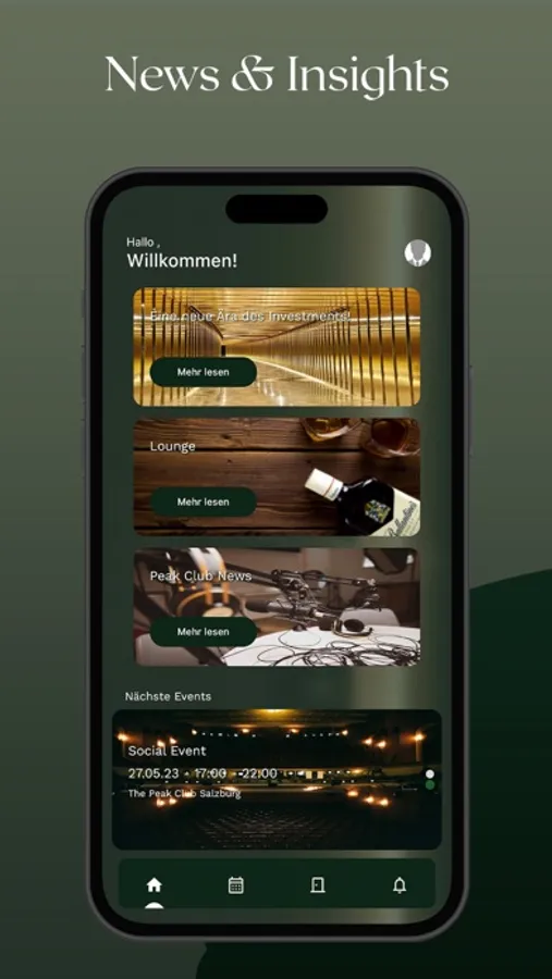 Die Abwicklung aller Tätigkeiten von, automatischer Türöffnung, der Terminplanung, dem Concierge Service bis hin zur Erbringung aller essenziellen News vom laufenden sowie neu entstehenden Projekten findet über die Peak Club Member App statt.