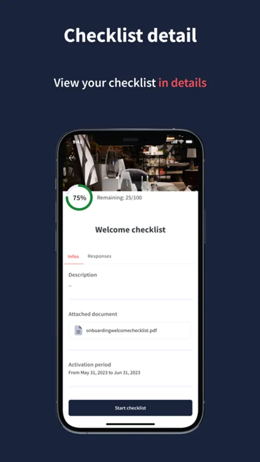 • Store ID: each team member accesses all stores within its perimeter ( sorted by geographic distance). Each store has a dedicated page with all the relevant key information: checklists available, photos taken in the store, latest activities and statistics.