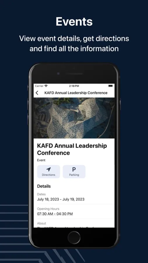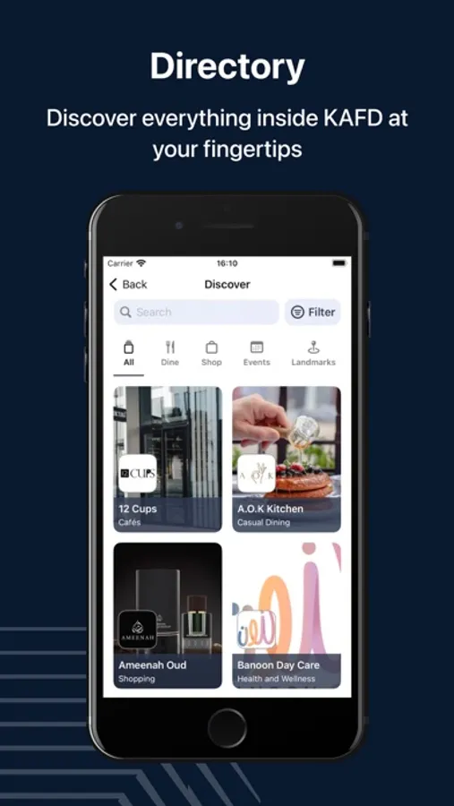 Experience the cosmopolitan living and the world class commercial offices and retail spaces with the KAFD app.