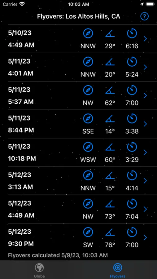 See upcoming visible flyovers for your GPS location. All viewing opportunities are calculated based on your precise GPS location and account for the estimated brightness of the ISS.