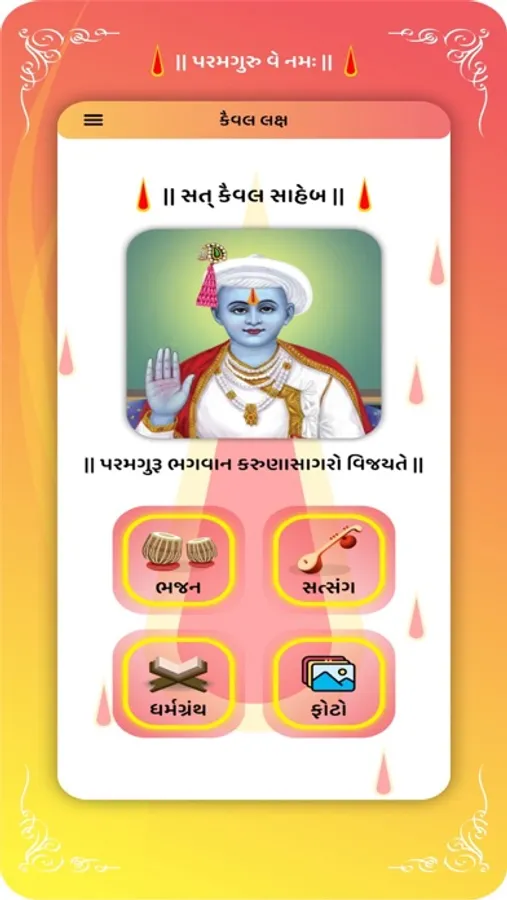 The Kaival Laksh application includes the knowledge tradition and scriptures of the Kayampath sect, as well as bhajans, katha-satsang, and was established by the noble and compassionate oceanic master, Lord Paramguru Bhagwan Karunasagar.