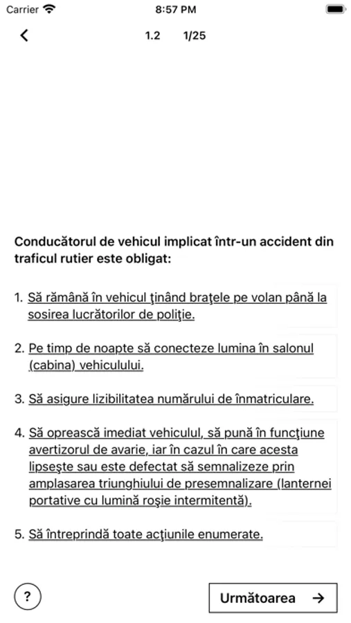 Dar nu ne credeți pe cuvânt - descărcați astăzi aplicația pentru testul teoretic de conducere pentru iPhone și vedeți singur cât de ușor și convenabil poate fi studiul pentru examenul de conducere teoretic. Cu aplicația noastră, vei fi pe drumul spre succes în cel mai scurt timp!