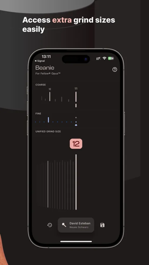 Beanie helps you find the right grind size on your Fellow® Opus™