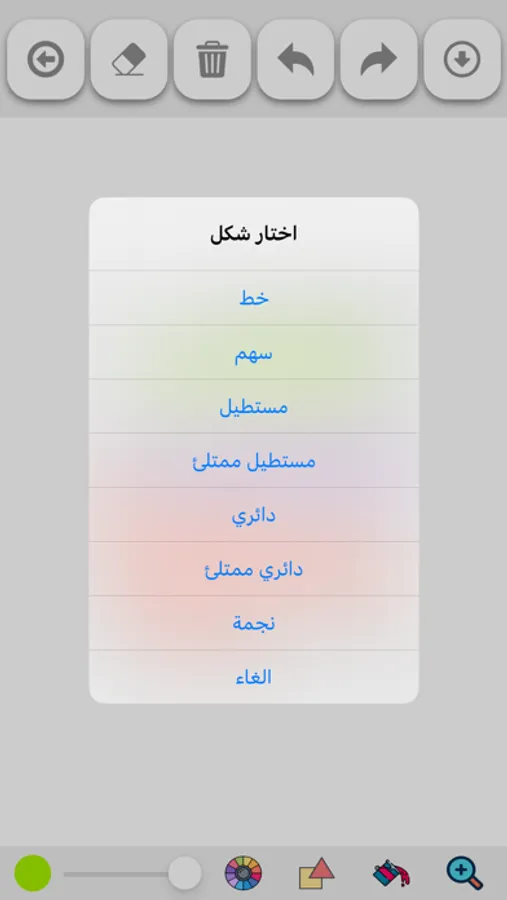 - اداة الممحاة لمسح الالوان الزائدة و تصحيح الاخطاء