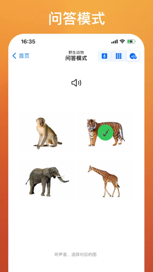 This is an English learning app specially designed for toddlers and beginners. The app aims to provide users with English enlightenment, learn the pronunciation of some common words, and help users memorize words by combining text and pictures. Users can easily learn different kinds of words like Fruits, Vegetables, Farm Animals, Wild Animals, Food, Drinks, Vehicles, Sea Animals, Sports, Colors, Insects, Shapes, Numbers and Alphabets etc.