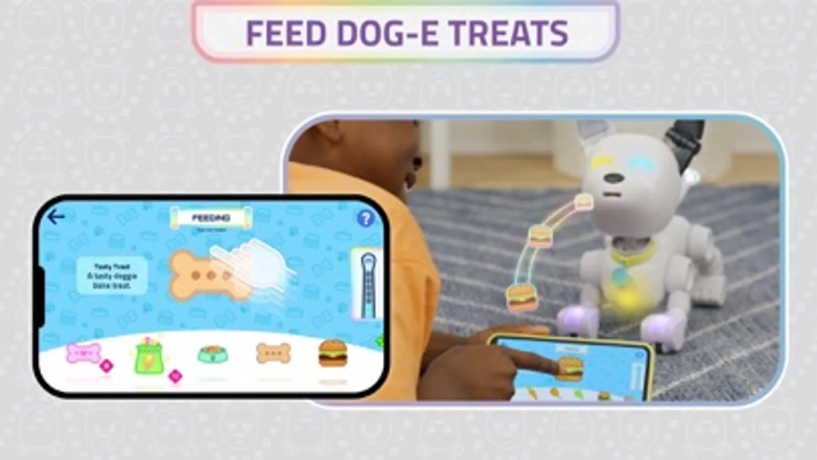 Feeding your Dog-E is even more fun in the app! Hold the app up, and you can “throw” Dog-E treats, and Dog-E eats them. Dog-E will even tell you when it likes a specific treat or not. You can even earn special treats the more you