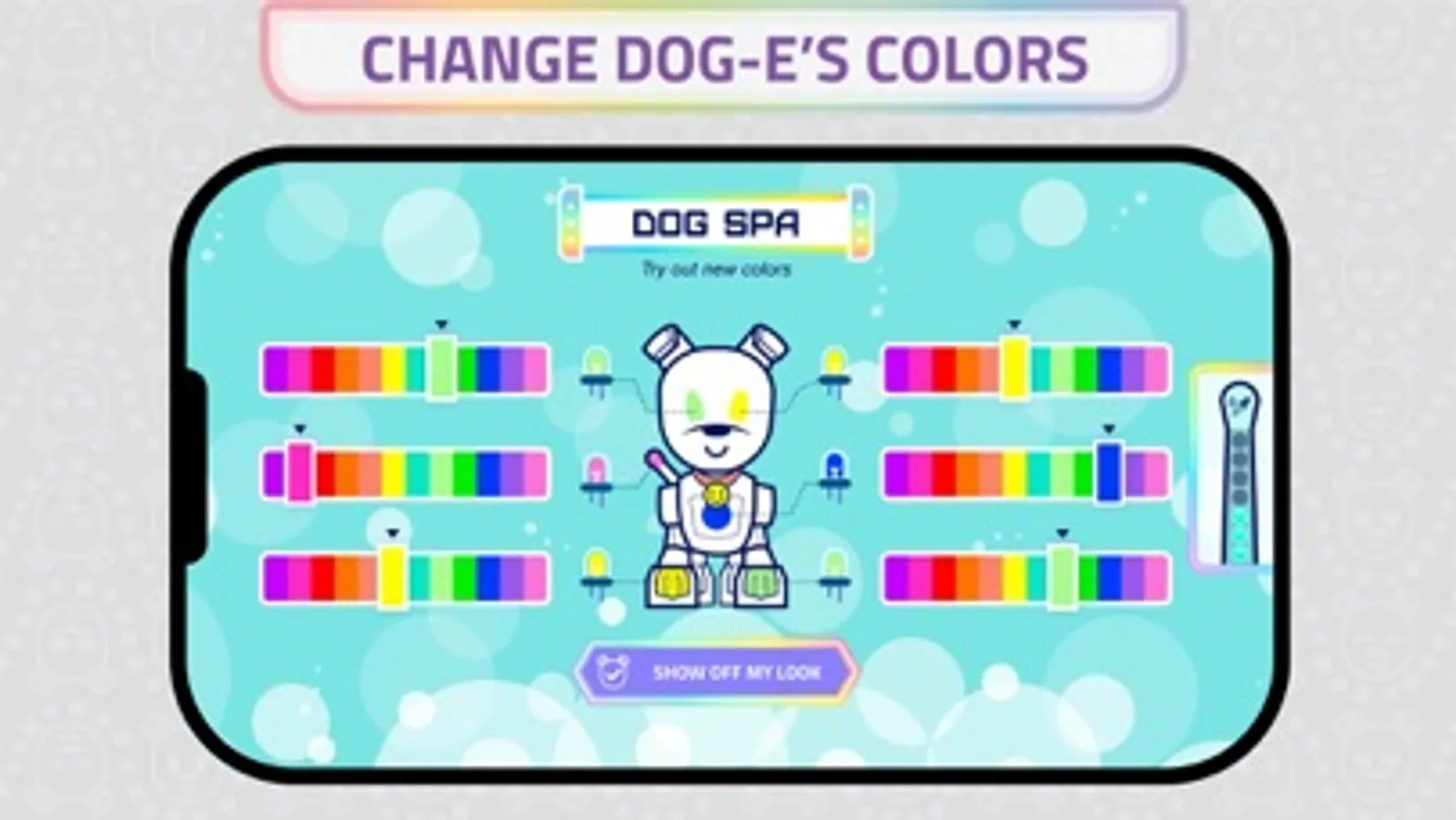 Care for, train, play games and more with Dog-E, your one in a million robot dog. Connect the app to Dog-E via Bluetooth to unlock more ways to play and see Dog-E come to life. Customize your Dog-E even more to make your robot dog totally unique to you.