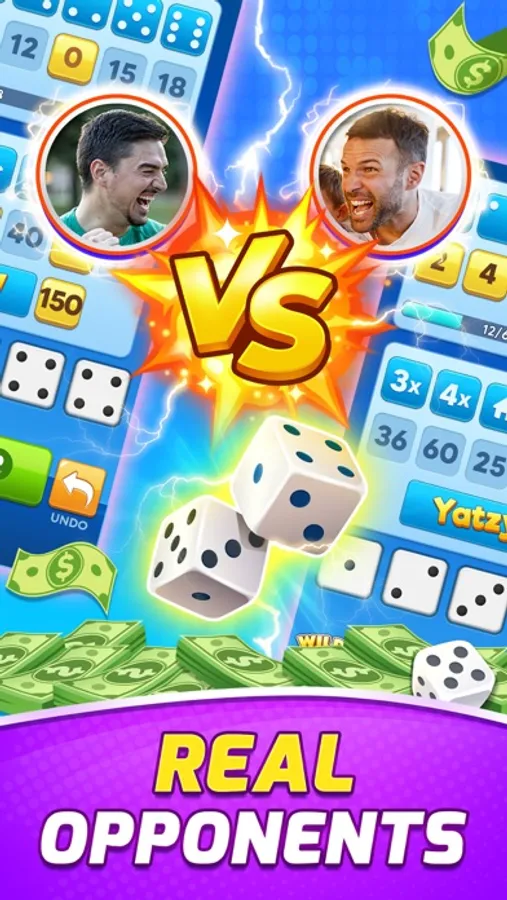 Competing Yatzy Clash with real-time players! Matching against opponents with comparable skill level, 100% fair in every match, super exciting in every game! Time to roll the dice & go for the best combos and win the real cash!