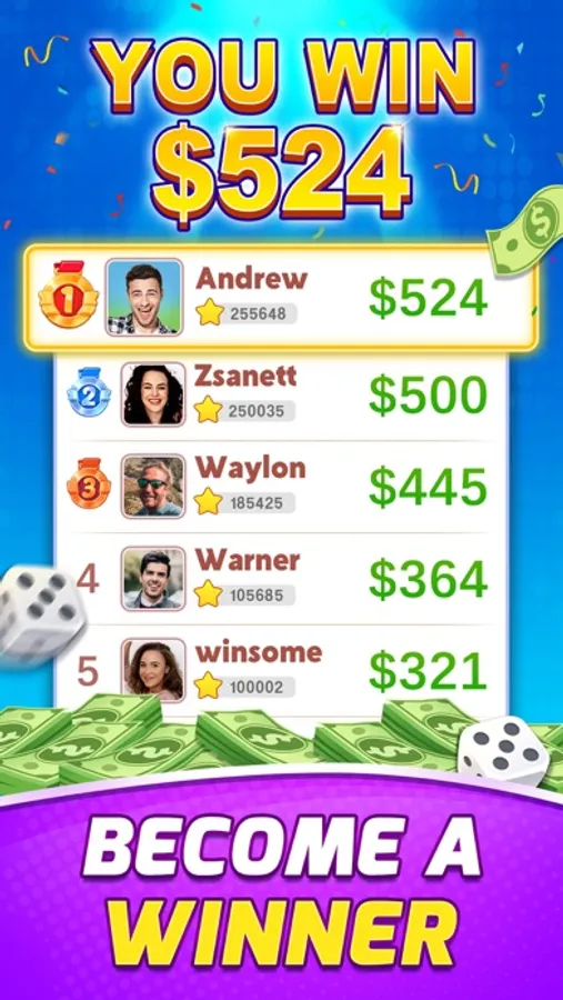 After downloading the game for FREE, you can start rolling the dice and win real money!
