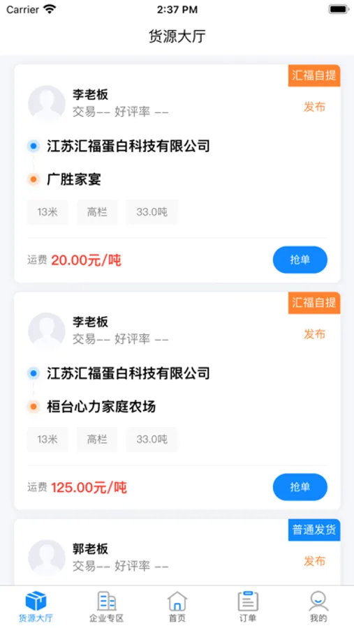 为大宗原料提货提供一站式配送服务,万辆卡车一秒响应;每日千车固定货源,车主赚钱争分夺秒。汇运客是一款用于大宗物料运输的专业软件,同时为承运人提供专票服务。用户在平台直接下达托运单(委托书)、查看托运单的核款、运输、出厂、送达等状态;司机在平台接单、报到、查看进场装货顺序。 【功能优势】 1、一键发布货源,准确查询、信息快速传递、订单跟踪、运输状态查询、 2、线上对账结算,准确掌握资金动向; 3、完善的车队管理体系、灵活的车辆调配; 4、关键节点平台消息推送 ; 5、多重资质认证,严苛审核制度,让交易更安全; 6、线下司机之家1对1全程服务。 全国热线:4008565888
