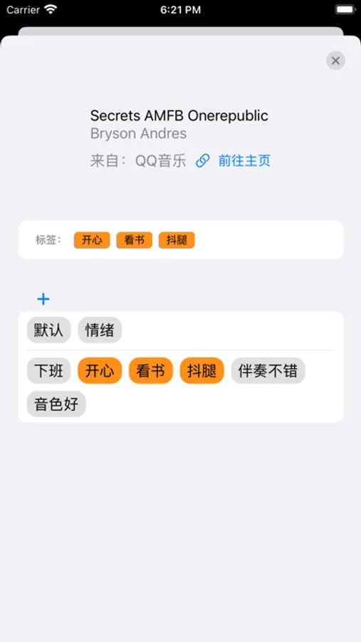 打标签App就是基于这种痛苦而产生的,你可以对某一首歌曲打无数个标签(比如 音色沙哑、电音、海边的感觉等等等等),当你选定某一个标签,就会列出来所有包含这些标签的歌曲。