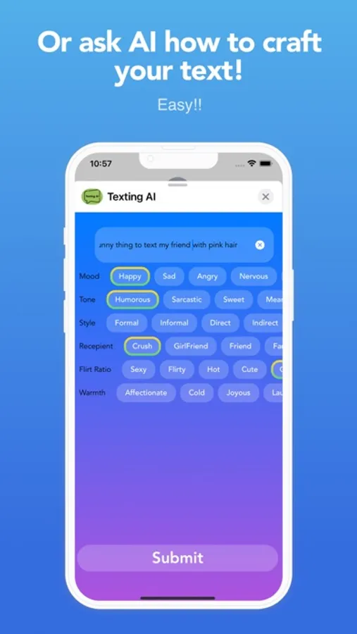 Looking for a fun and innovative way to text your friends and relationships? Look no further than our iMessage app! With our app, you can chat with Texting AI, the powerful artificial intelligence, to get instant and personalized responses to your messages.