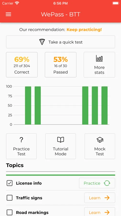 WePass Singapore BTT helps you practice for the Basic Theory Test in Singapore to get or convert your driving license.