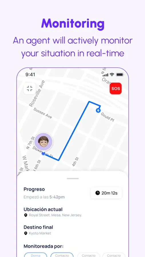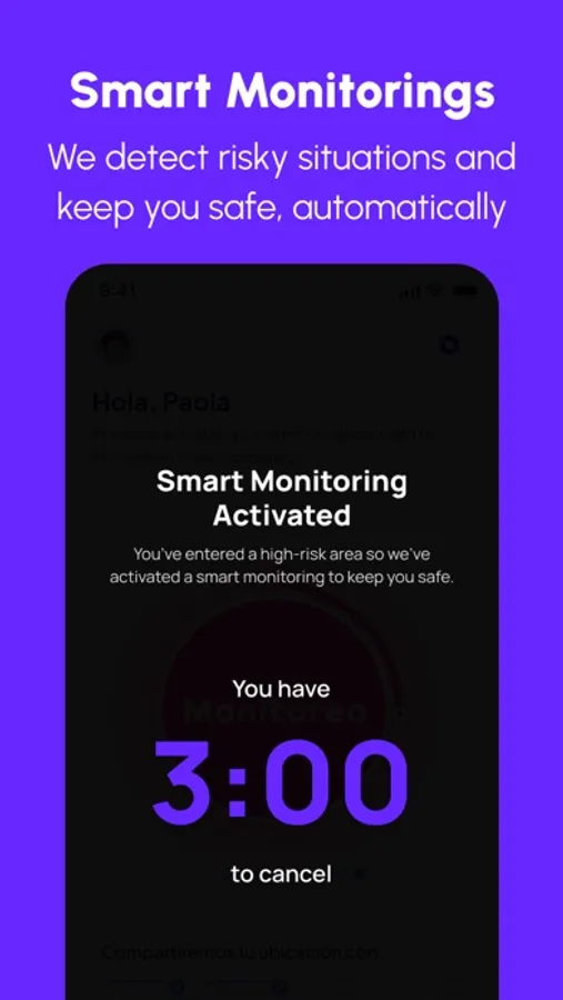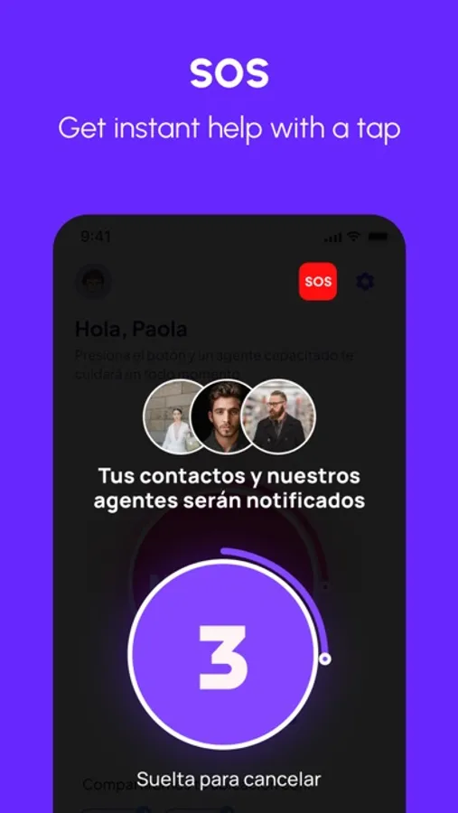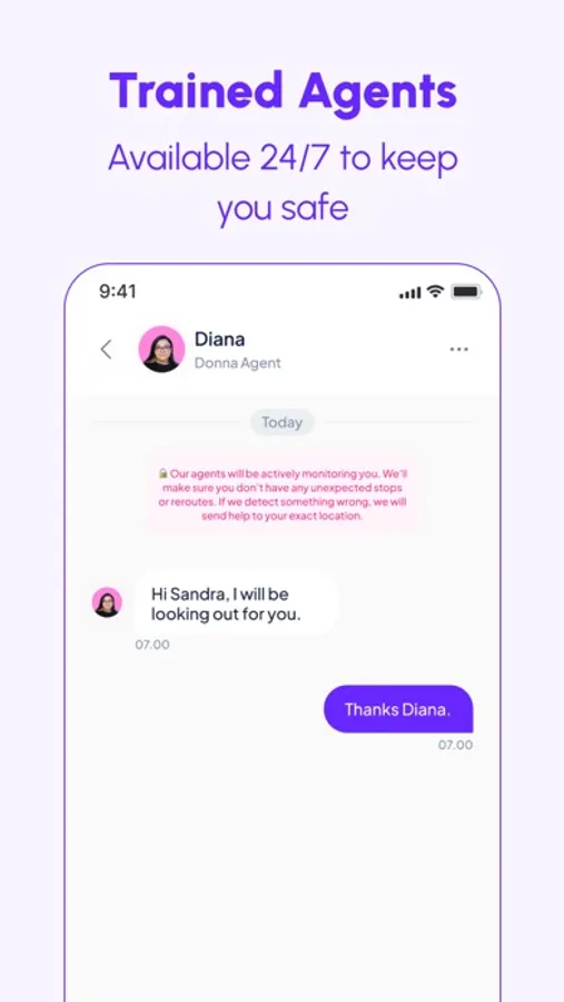 Real-Time Monitoring: Our agents con monitor any situation in real-time, providing guidance and support when it’s needed most. It's great when going out at night, riding a cab, or going out with your girlfriends.