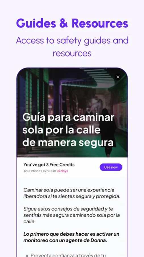 Donna is the ultimate safety toolkit for women living in Latin America. Our app helps you stay safe, informed and connected, while providing the tools and resources you need to stay safe and protect your rights.