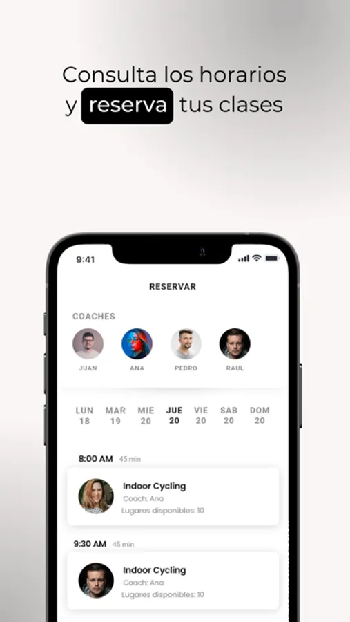 Conoce los horarios de tu estudio, reserva y compra fácilmente desde la app.