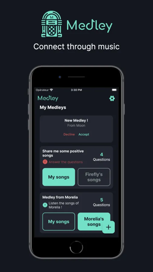 Medley is a unique and interactive music-based app that lets you connect with people through a shared love of music. With Medley, you can create and share lists of thought-provoking questions with your friends, family, and strangers, that they have to answer using a song. You also have to take part in the answering process and receive the answers of others, as well as give your opinion about them.