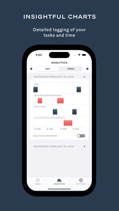 * Insightful Charts: Our app features insightful charts that visually display your productivity data, making it easy to understand and analyze your performance.