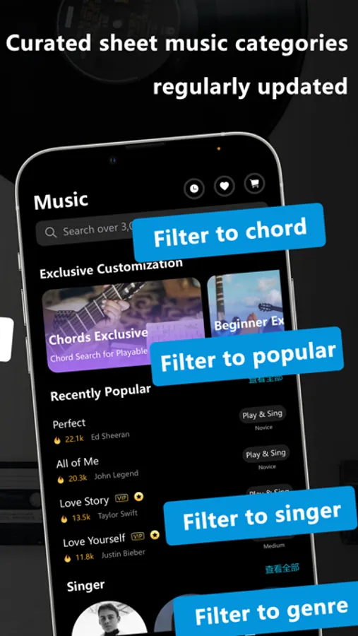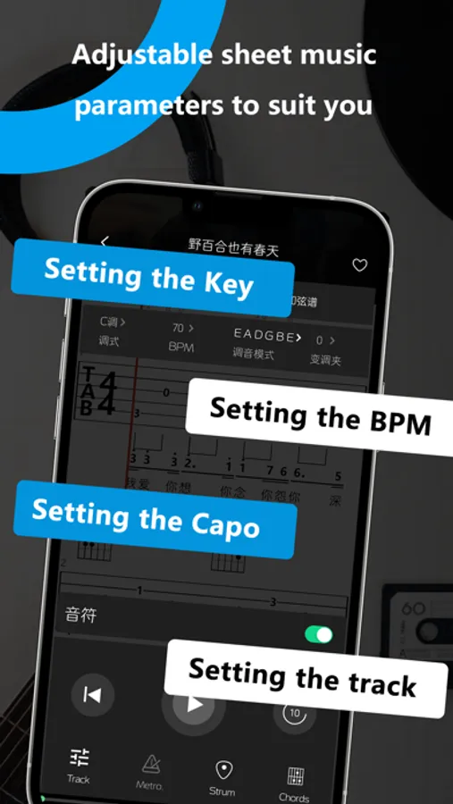 Transposition function: guitarTune's transposition function allows you to raise or lower the pitch of an entire piece by a single step, making real-time adjustments convenient.