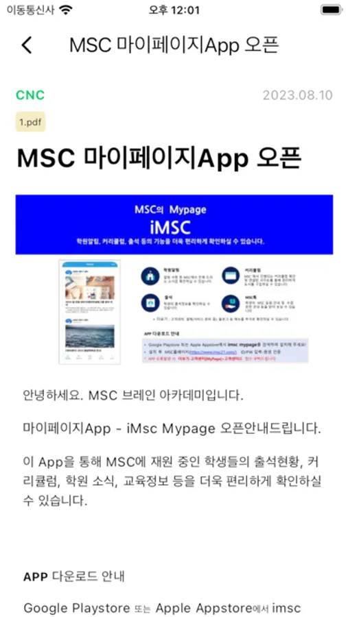 iMSC MyPage Screenshots