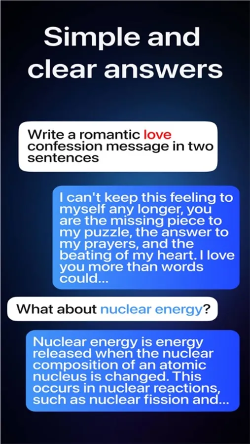 AIChat is more than a machine; it understands and cares about you. To protect your eyes at night, it has a built-in night mode. With a user-friendly, optimized and intuitive interface, AIChat makes it easy to interact with your natural AI chatbot like a friend.