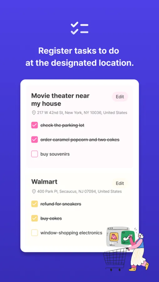 - You can register locations where you have tasks to do, such as home, office, laundry, and supermarket.