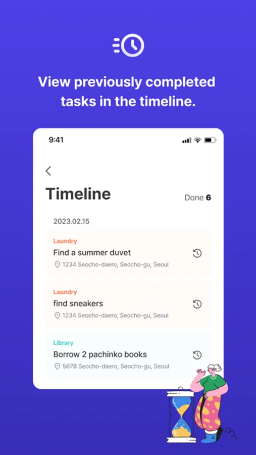 ■ View previously completed tasks in the timeline.
