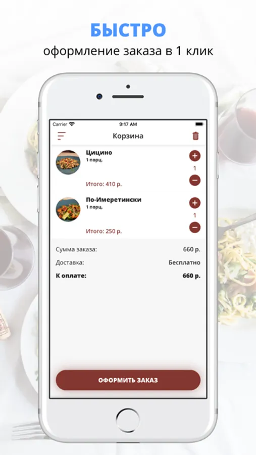 Скачивайте наше приложение, оформляйте заказ и наслаждайтесь любимой едой, где бы Вы ни были! Приятного аппетита!