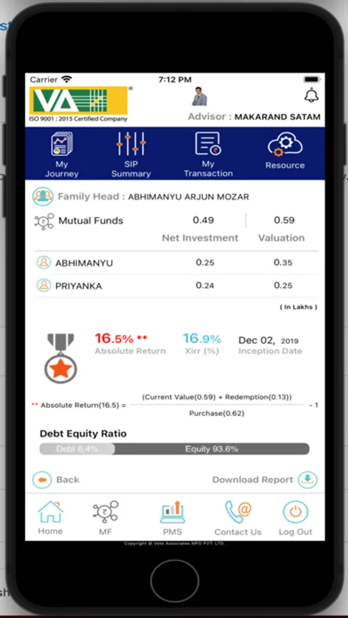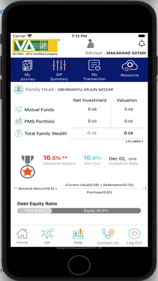 Vete Associates Client Desk help clients to track their family mutual funds and PMS investment details.