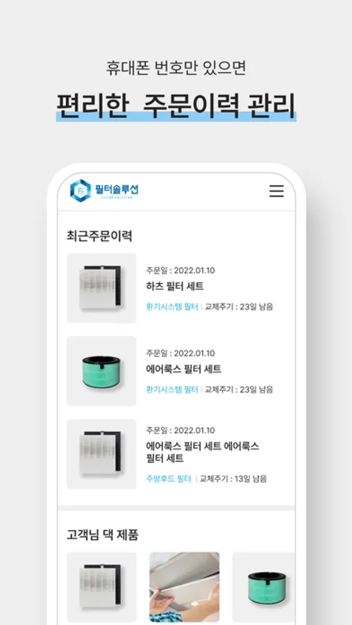 그 동안 모든 플랫폼을 이용해 구매했던 이력을 제공하며 교체주기, 재구매를 즉시할 수 있도록 서비스를 지원합니다.