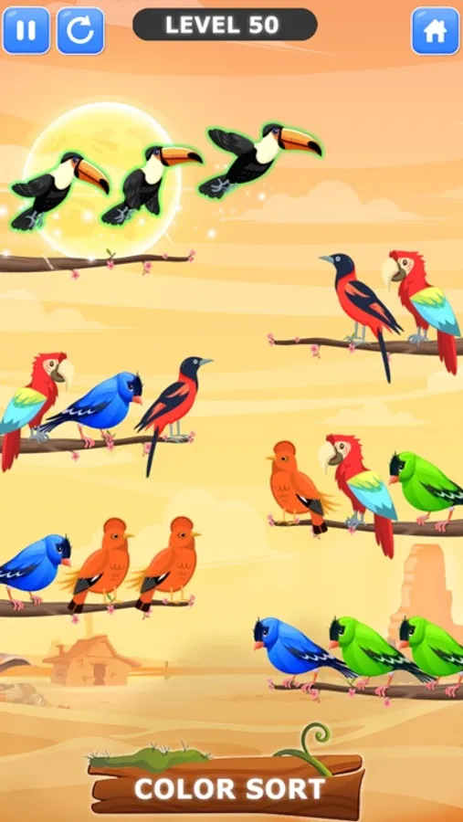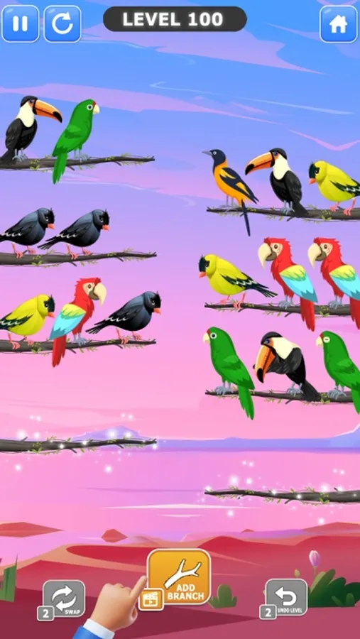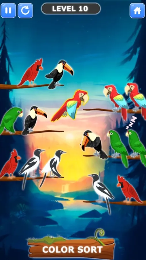 Bird Color Sort is a fun and addictive puzzle game! Lets Start sort the colored bird on the branch until all the flying birds have the same color and fly away. You have enjoyed water sort puzzle game that are no longer unique. With new style of color sorting game, with colorful bird and bird singing bring a challenging yet relaxing game to polish your brain!