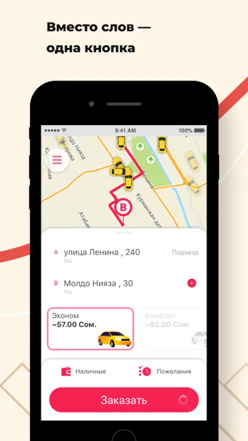 Загрузи приложение Такси CARS за несколько секунд и заказывай такси в 2 клика в городе Ош.