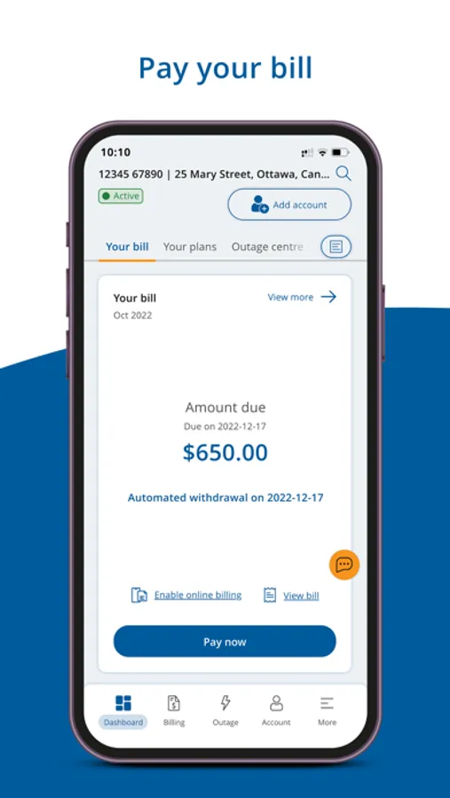 Hydro Ottawa’s app provides you with 24/7 access to manage your account online. Redesigned based on customer feedback, it includes new features and enhancements. Open to residential and commercial customers, as well as those without a Hydro Ottawa account, the app allows users to sign up to access a number of services and tools like alerts and notifications, report an outage, or open, close or update a new or existing account. New features and functionalities will be rolled out in phases over 2023.
