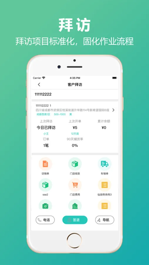 外勤业务管理:客户管理、拜访计划、拜访记录、拜访页面、外勤轨迹、外勤照片