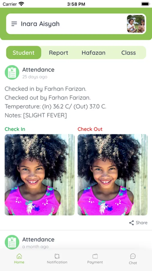 AKE Parent integrates multitudes of features you would need in a management application. Signing in/out, in app messaging, daily class/student report, photos and many more.