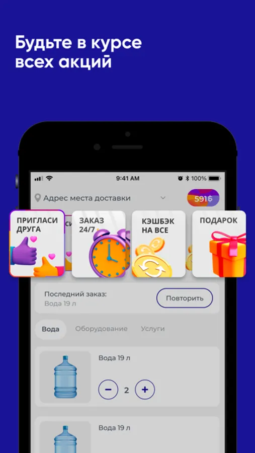 Скачайте приложение Белый ключ на свой смартфон и делайте заказ воды 24/7. Вы сможете повторять заказ нажатием одной кнопки, видеть всю историю покупок и быть в курсе всех акций компании.