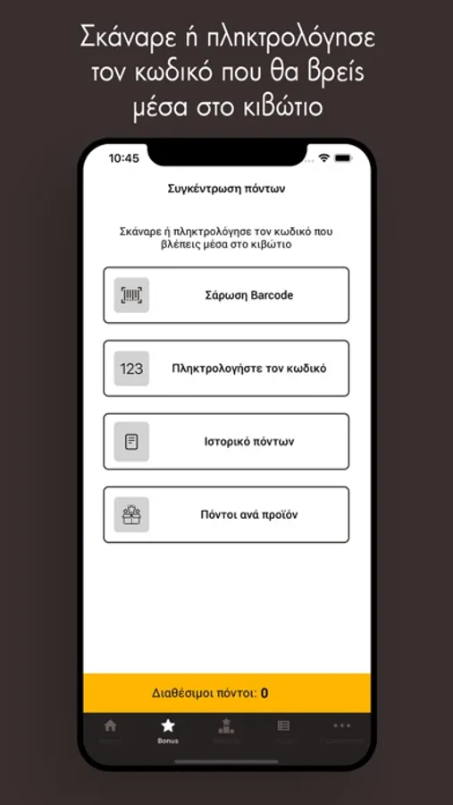 Πως μαζεύεις πόντους: Αφού ολοκληρωθεί η διαδικασία εγγραφής, κάνεις είσοδο στην εφαρμογή, πατάς το κουμπί «BONUS» και σκανάρεις ή πληκτρολογείς τον κωδικό που θα βρεις στο κόκκινο αυτοκόλλητο στο εσωτερικό του κιβωτίου.