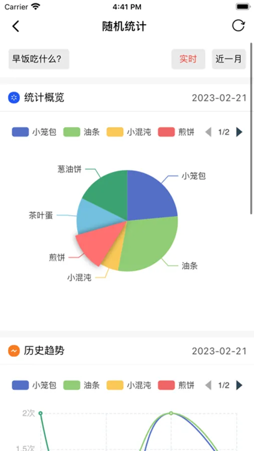 4、随机结果历史统计,有曲线、有饼图、有明细,历史记录全都有!
