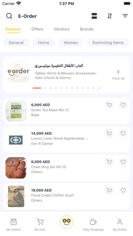 E-Order is straightforward application to use, and offers online shopping via Shops, Brands, Category or products, which makes it suitable for all.