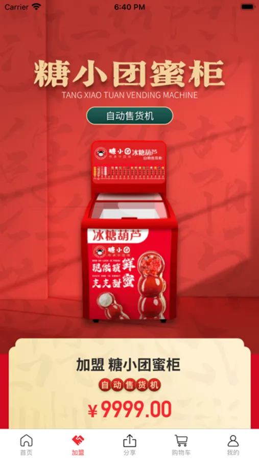 糖小团蜜柜是广东糖小团科技有限公司自主研发的国内首款冰糖葫芦自助售货柜机,糖小团蜜柜颠覆传统冰糖葫芦售卖形式,打破冰糖葫芦口味限制,一经推出就火爆国内市场。糖小团蜜柜运用创新物联网技术结合腾讯免密支付技术,实现远程操控,无人值守,自助售卖,深度锁鲜等功能。同时具备体积小,功能全,能耗低,颜值高等特点深受广大加盟商和消费者喜爱。